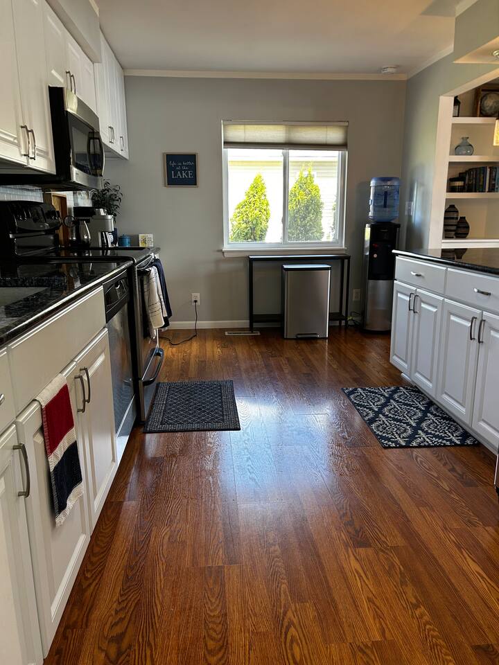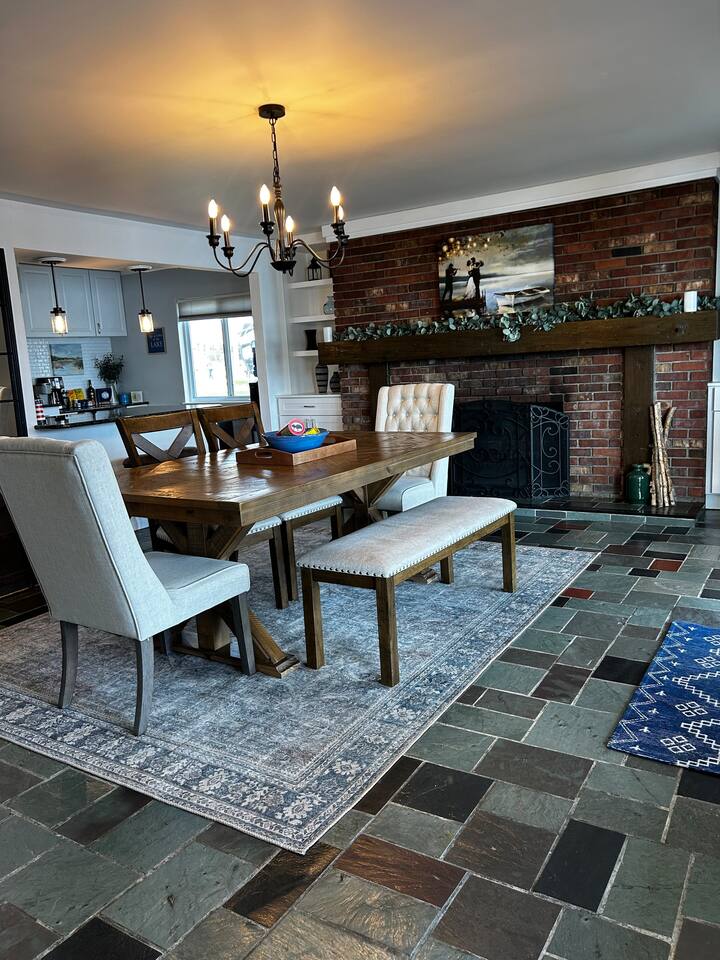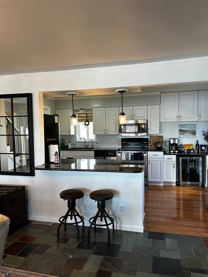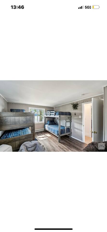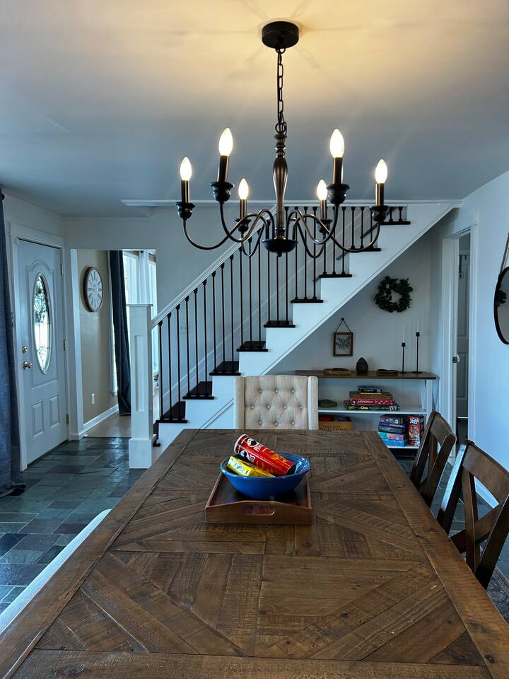 This charming 3-bedroom, 2-bathroom home is your perfect escape for a family getaway, romantic retreat, or a fun weekend with friends. Our casa is your casa! Living & Dining: Relax in the cozy living room on a comfortable sectional sofa with serene views of the lake. Stream your favorites on the 65" Smart TV. The adjacent dining area is perfect for sharing meals or enjoying a game night with provided board games, all while overlooking the water. Kitchen & Laundry: Fully stocked and equipped kitchen with a refrigerator, stove, microwave, and dishwasher. Coffee maker and Keurig provided to start your day right. Convenient in-unit washer and dryer. Bedrooms & Bathrooms (Sleeps 8): Primary Bedroom (1st Floor): Features a comfortable King bed. Second Bedroom (2nd Floor): Offers a Queen bed and a cozy reading chair. Third Bedroom (2nd Floor): Perfect for kids, with two sets of bunk beds. A crib/pack 'n play is also available for those traveling with little ones. Two full bathrooms (one on each floor) stocked with fresh towels, shampoo, conditioner, and body soap. The second-floor bathroom includes a shower/tub combination. Outdoor Living & Fun: Spacious covered deck with cafe lights and outdoor dining furniture. Private sandy beach and dock on 64 feet of private shoreline. BBQ grill for afternoon cookouts. Fire pit for evenings under the stars. Ping pong table for friendly competition.